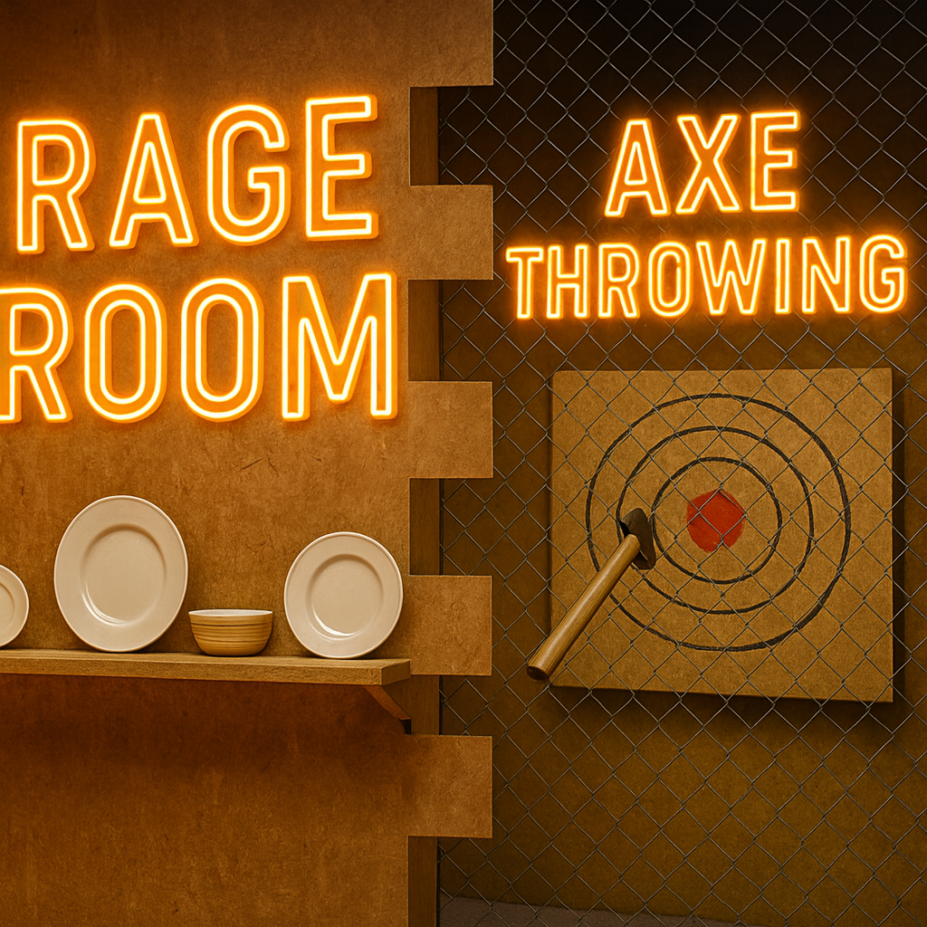 Čia tai galima daryti drąsiai, niekieno netrukdant ir nevaržant, įvairių ginklų pagalba (suteikiame beisbolo lazdas, plaktukus, kūjus ir pan.) paleisti savo emocijas daužant įvairiausius indus.